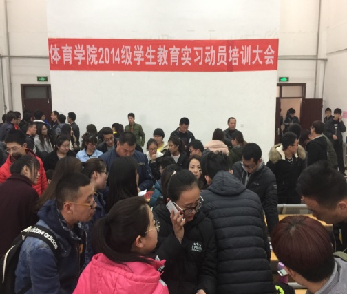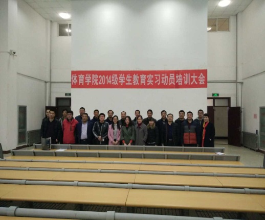 2017年2月24日,体育学院在8教106召开了2014级体育教育、舞蹈学(师范类)专业学生教育实习动员与培训大会。滨城区教育局体育教研室主任吴绍军、体育学院书记王建华、副院长李金华以及来自杨柳雪学区、三河湖学区、梁才学区、滨北学区、秦皇台学区、区直中小学等二十位主任和校方代表出席了会议。